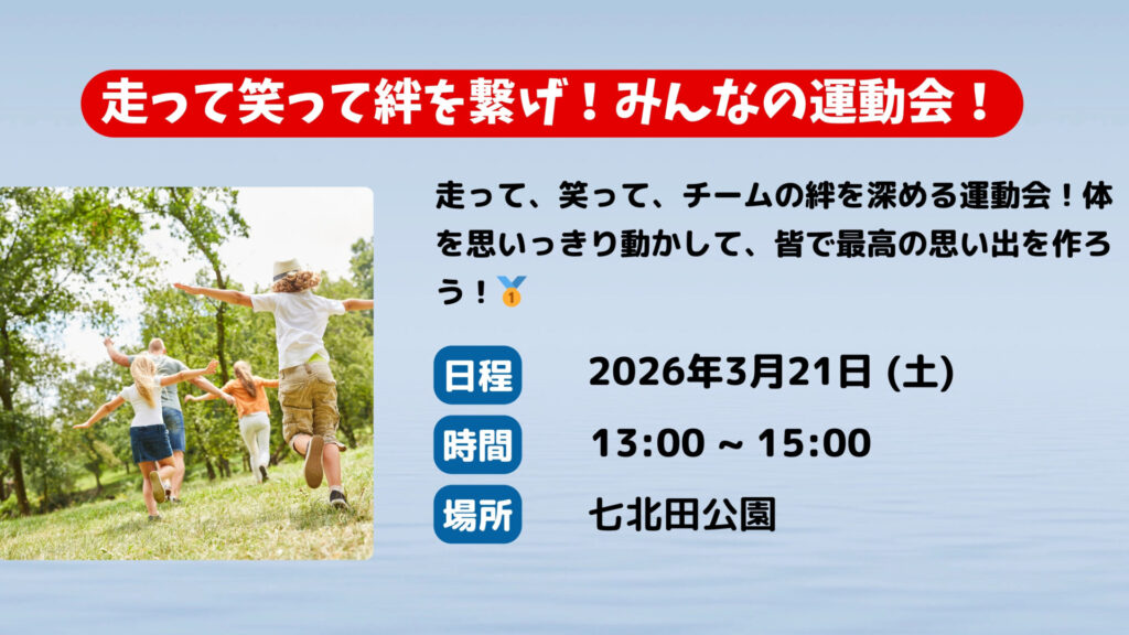 場所:七北田公園開始日時:2026年3月21日(土)13:00終了日時:2026年3月21日(土)15:00